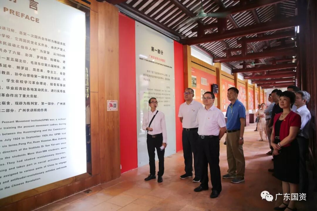 全体党员干部首先来到广州农民运动讲习所,这里有着一组红墙黄瓦、古朴庄重的建筑群,毛泽东同志曾在此主办农民运动讲习所,为党培养了大批农民运动骨干,省国资委领导班子成员听取农讲所有关介绍,上了一堂革命历史课。