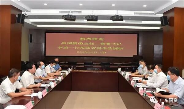 5月13日上午,省国资委主任、党委书记李成率部分省属企业调研省科学院,与省科学院党委书记、院长廖兵就推动产学研深度融合,促进省属国有龙头企业科技创新,助力省属国企高质高效发展问题进行了深入交流座谈。省国资委副主任、党委委员王晓昀,广业集团党委书记、董事长黄敦新,广新控股集团党委副书记、总经理白明韶,省科学院党委副书记颜国荣,副院长李定强、周舟宇出席座谈会。