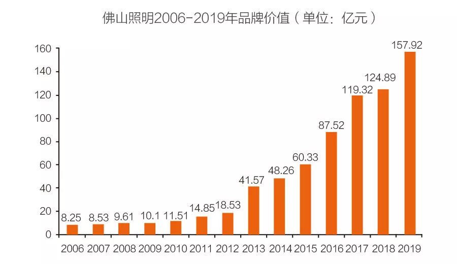 《中国500最具价值品牌》已连续发布16年,同时也是佛山照明连续14年蝉联品牌榜,从2006年首次跻身于《中国500最具价值品牌》,以品牌价值8.25亿元排名456位,发展至今,佛山照明品牌价值实现了质的飞越,14年光阴匆匆,如今佛山照明品牌价值已经达到157.92亿元,涨幅达到1814.18%,可见发展势头迅猛,再度入围中国500最具价值品牌榜,更是行业对佛山照明品牌实力的充分肯定。