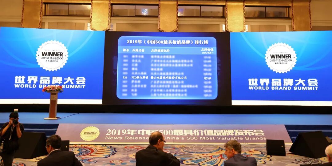 6月26日,由世界品牌实验室(World Brand Lab)主办的(第十六届)“世界品牌大会”在北京举行,会上发布了2019年《中国500最具价值品牌》分析报告。其中,佛山照明连续14年入选“中国500最具价值品牌”,排名较去年继续提升,2019年品牌价值157.92亿元,同比增长26.45%,总排名326位。